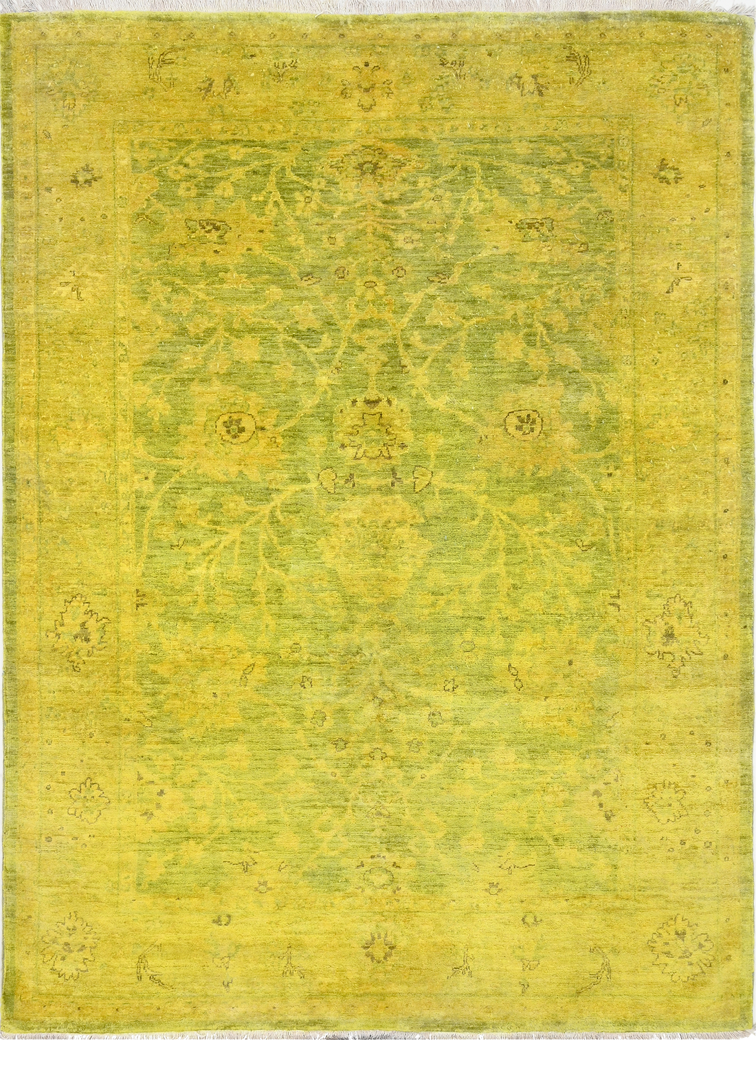 Collector’s Note Green Patina is a hand knotted wool rug that has been overdyed in...