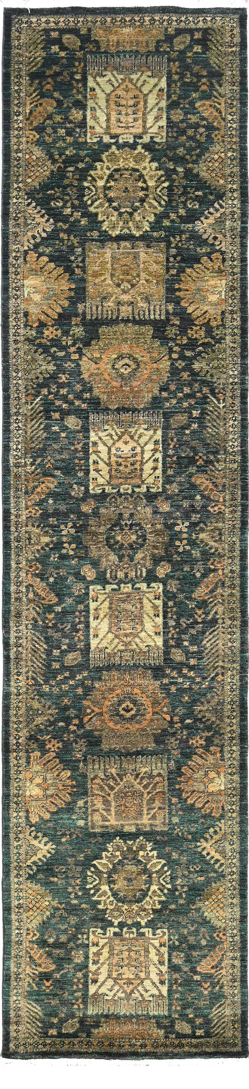 Emerald Shrine Runner draws from antique Caucasian prayer and village rugs, where each panel represents...