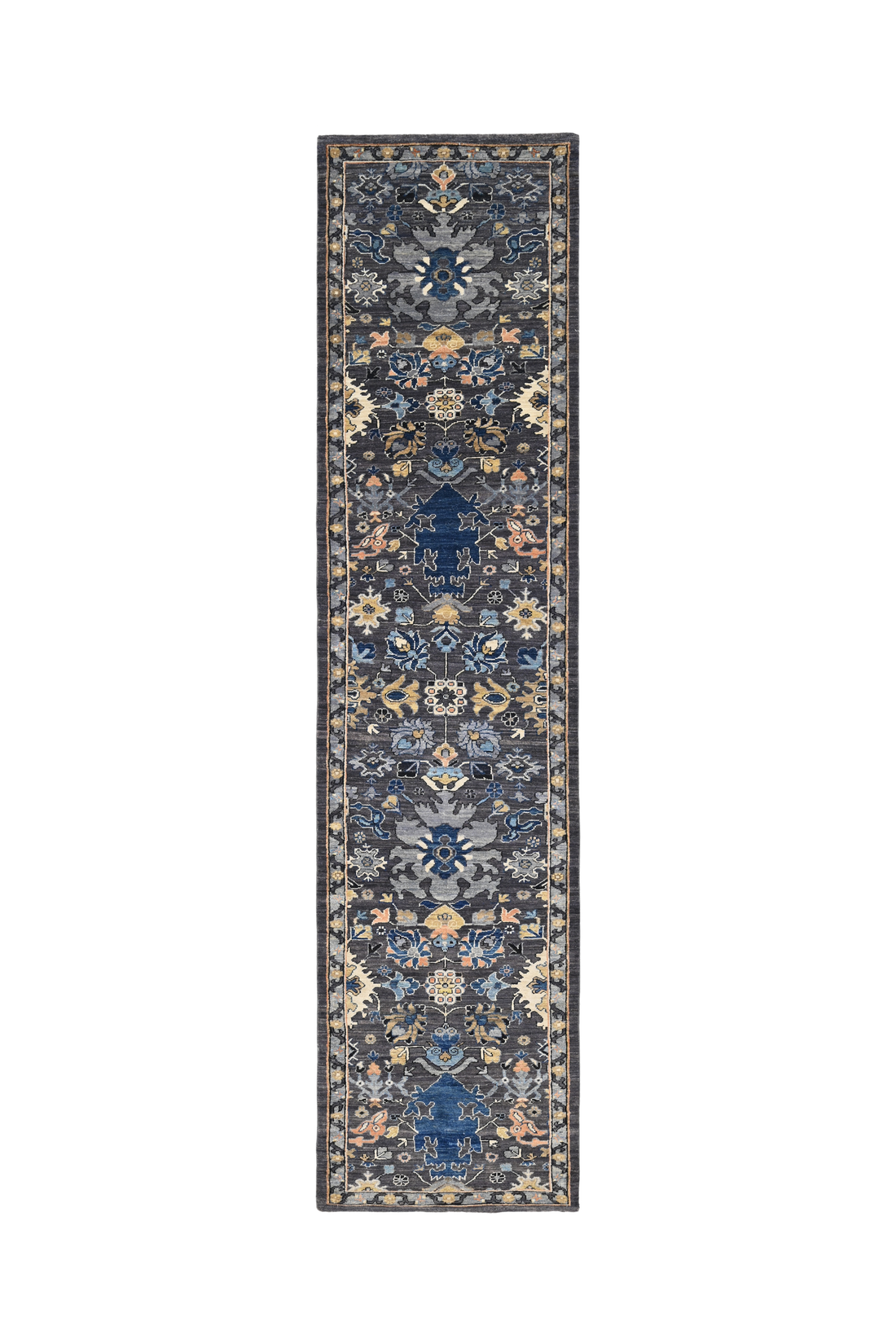 Collector's Note Blue Ember is a hand knotted wool runner woven in a palette of...
