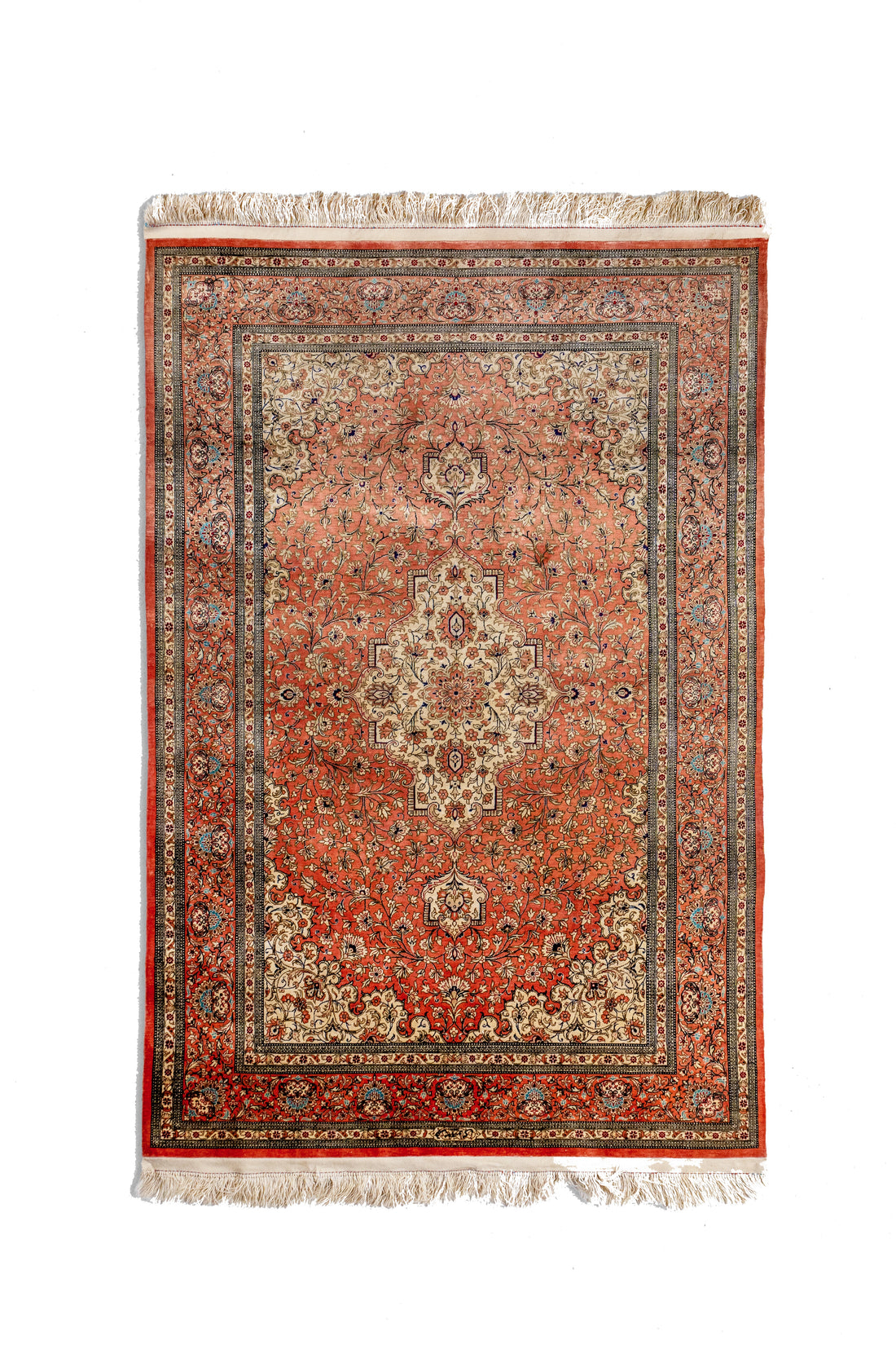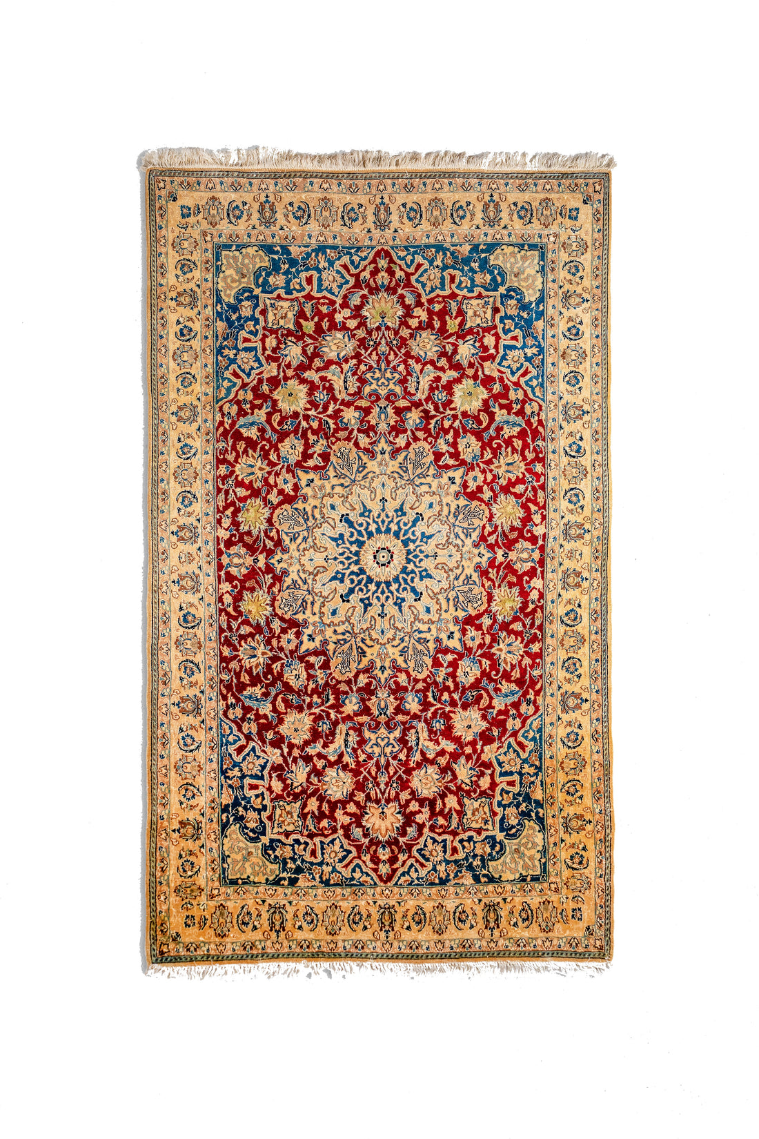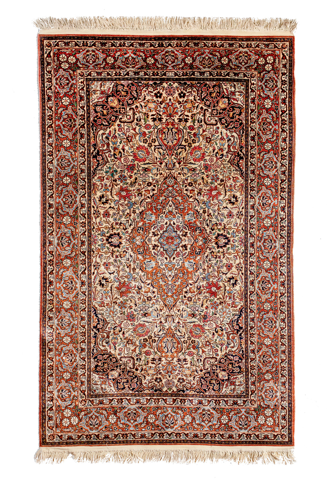 Collector's Note Mid-20th century Persian rug, finely knotted in kork wool, c. 300–400 KPSI. The...